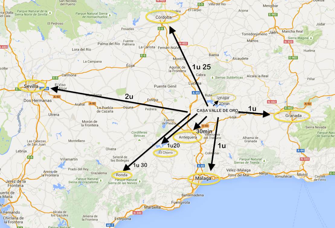 Casa Valle de Oro est la point de départ idéal pour les villes de Cordobe, Grenade ou Malaga ou pour des petites villes moins connues mais toutes aussi magnifiques telles que Antequera avec sa belle forteresse et 39 églises.